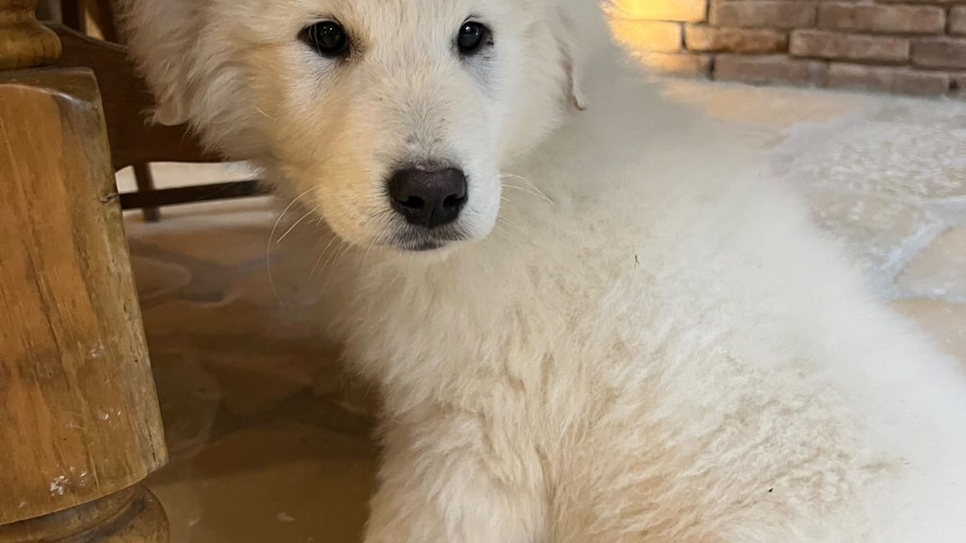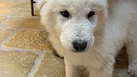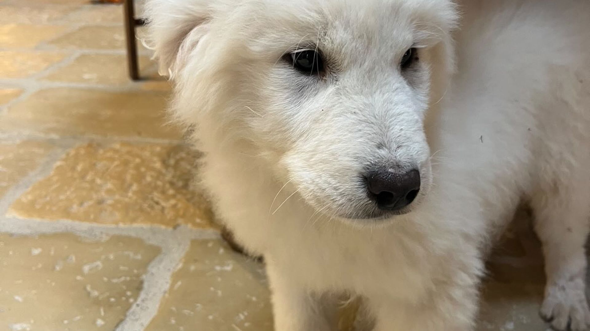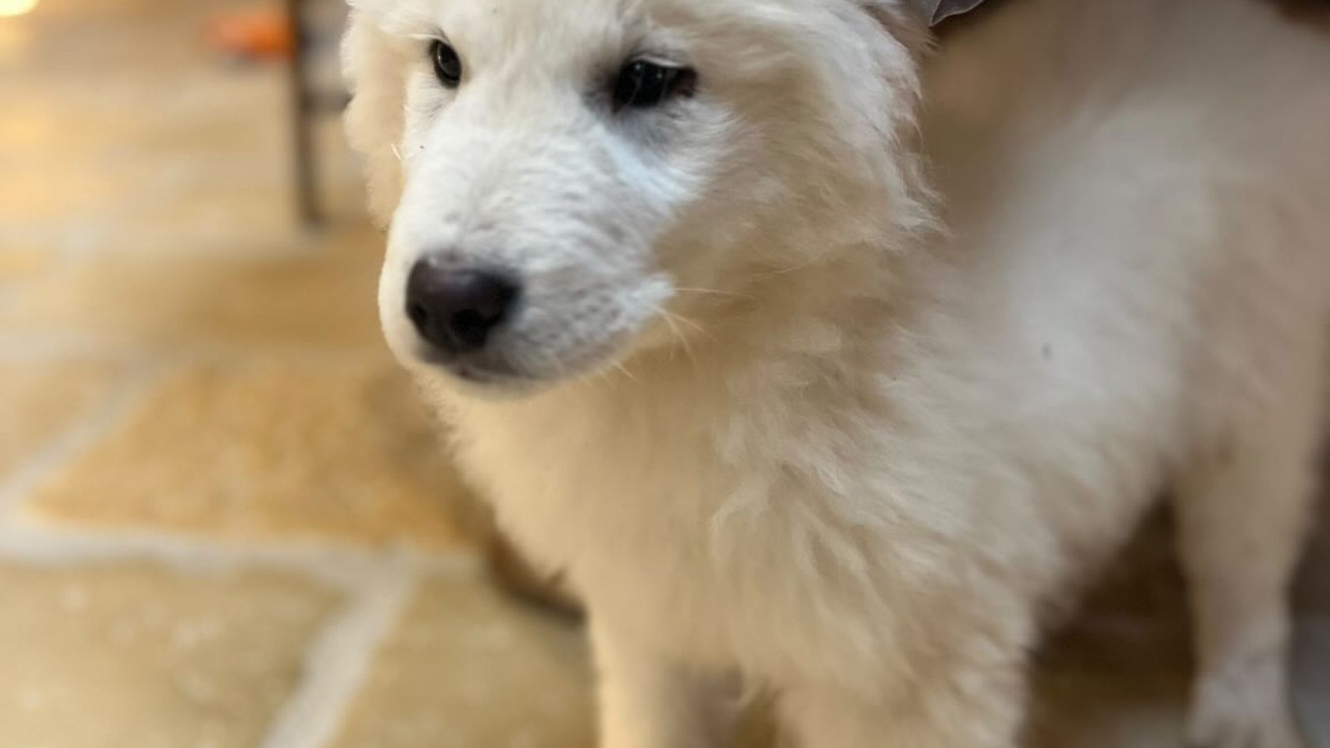 The coat is white, in accordance with the standard, with correct pigmentation that enhances the Maremma Sheepdog's typical, proud expression. His structure, already well-established at a young age, suggests significant and harmonious development, with the potential to become an imposing, solid, and well-proportioned dog.