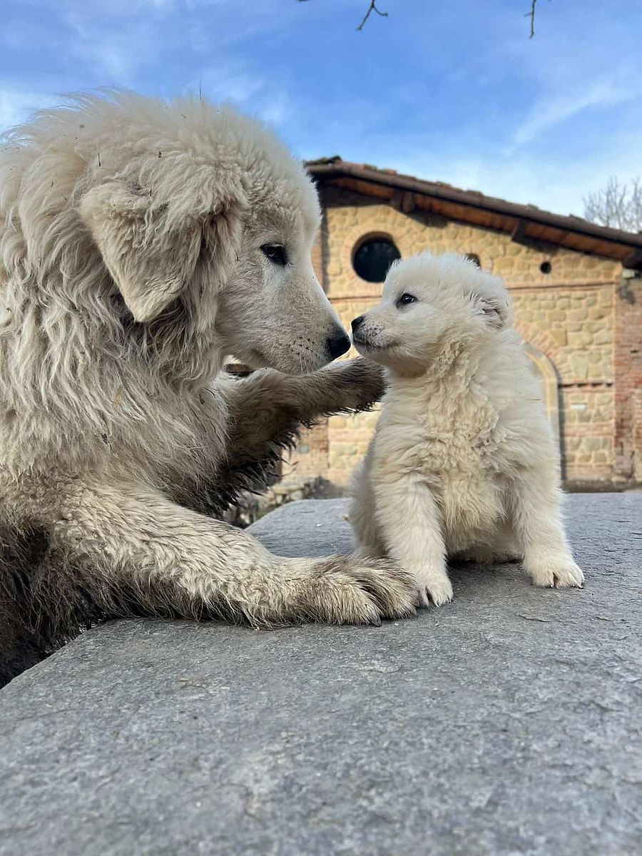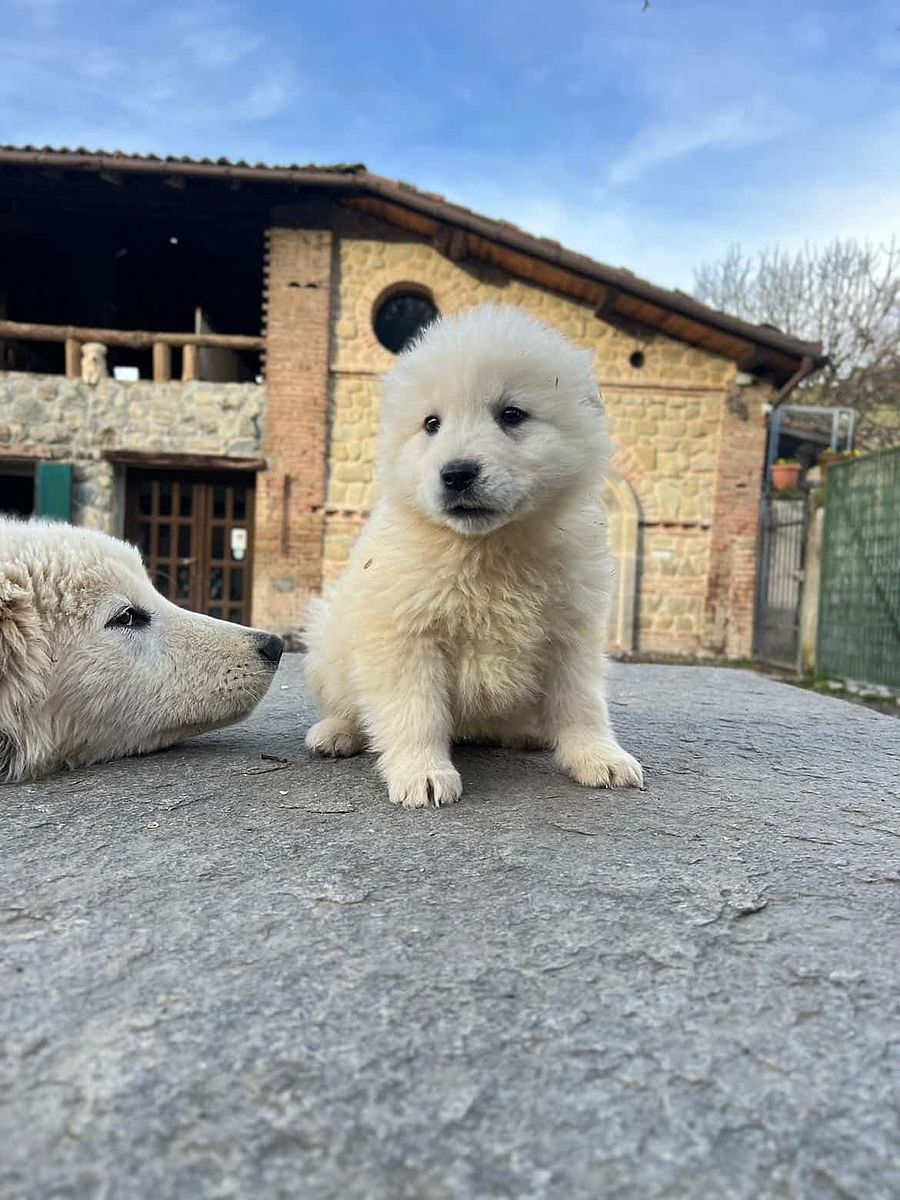 Kea therefore represents an ideal combination of morphological typicity and character solidity, indispensable qualities for those seeking an authentic Maremma Abruzzese Sheepdog, capable of growing into a loyal companion and, at the same time, an effective guardian of property and territory.