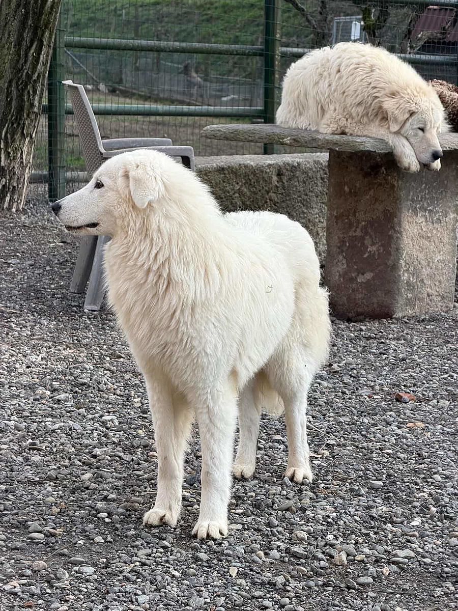 Bernadette is a young female who combines typical morphology, a solid temperament, and a natural aptitude for protecting the land and livestock. She is a promising dog, destined to further mature both structurally and in character, and already clearly demonstrates the qualities that a breeder selects with care and responsibility.